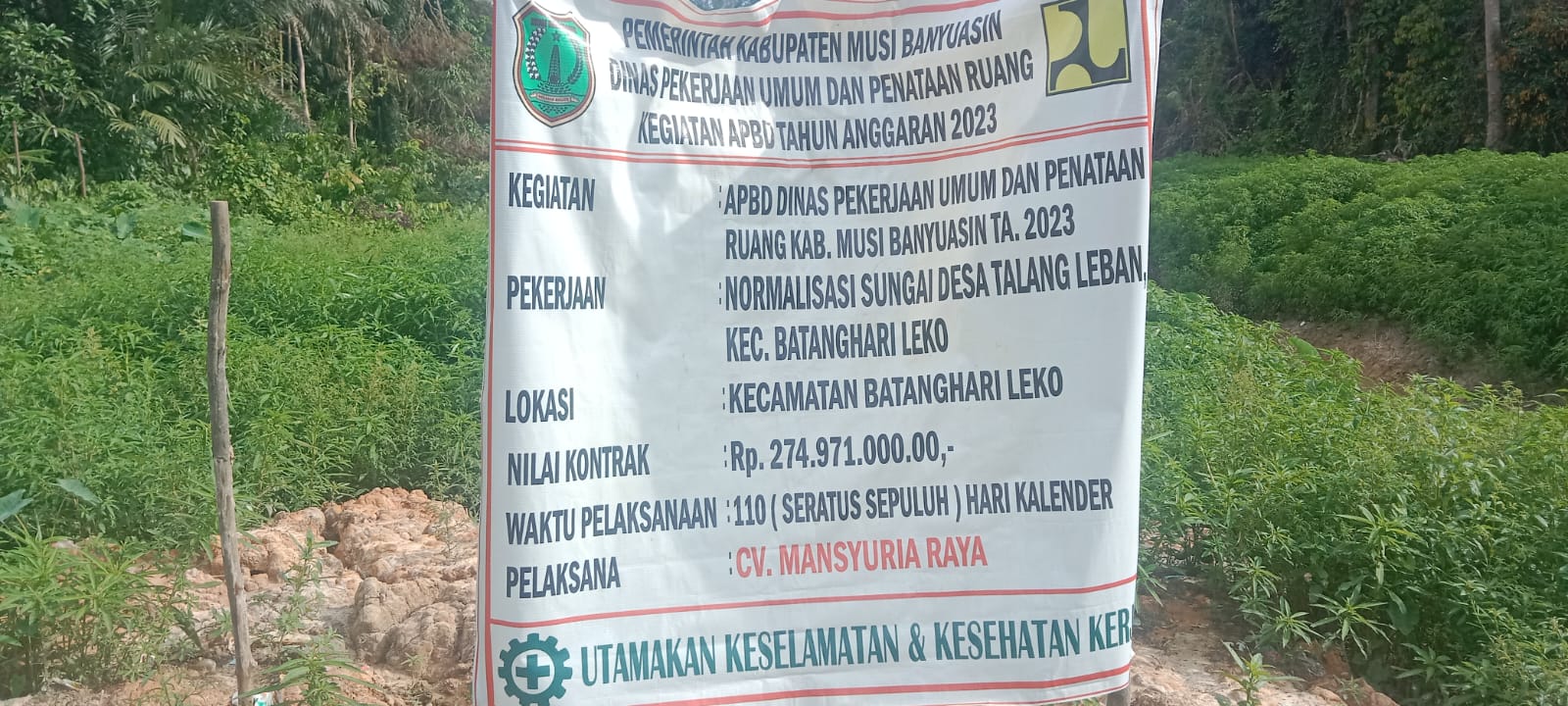Seperti halnya yang dikerjakan oleh Pihak ketiga yaitu di desa Talang Leban, Kecamatan Batang Hari Leko dimana Normalisasi tersebut bernilai Rp. 278.341.000,- oleh CV Mansyuria Raya APBD-P Tahun 2023.