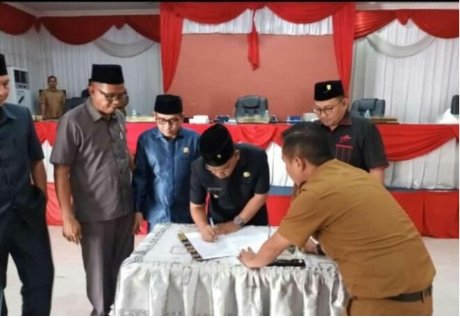MURATARA| Jembatanrakyat.id- Dewan Perwakilan Rakyat Daerah kabupaten Musi Rawas Utara bersama Bupati melakukan penandatanganan Nota kesepakatan tentang Perencanaan Program Pembentukan Peraturan Daerah (Propemperda) Tahun Anggaran 2024 pada Senin (10/6/2024)