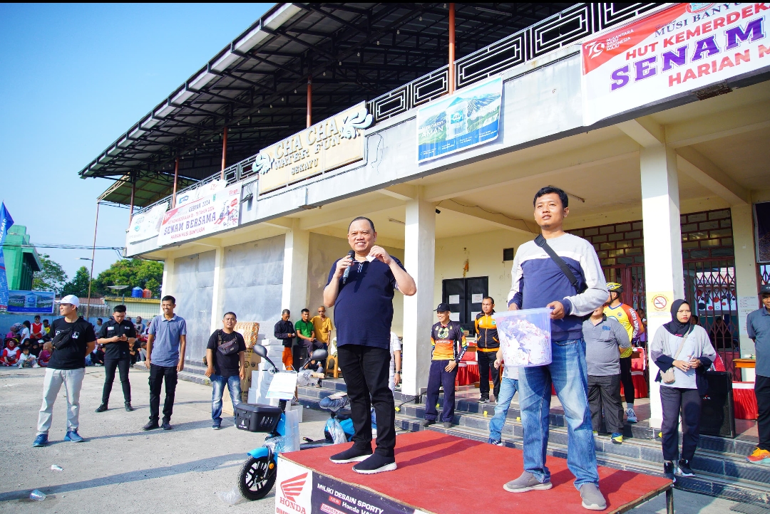 “Ini sebagai bentuk untuk turut memeriahkan rangkaian di bulan Agustus bulan Kemerdekaan Indonesia. Adapun dari rangkaian senam ini nantinya akan ada pengundian kupon doorprize sebagai bentuk apresiasi dan motivasi bagi peserta senam. Hadiah utamanya berupa Sepada Motor Listrik, hadiah lainnya sebuah kulkas, kipas angin, magic com, setrika dan lainnya. Kami juga mengucapkan terima kasih kepada semua pihak yang telah menjadi sponsor, dan kepada pak Pj Bupati Sandi Fahlepi kami juga mengucapkan terima kasih, karena secara langsung sudah menambahkan 1 buah hadiah Sepeda motor listrik untuk masyarakat,” tandasnya.