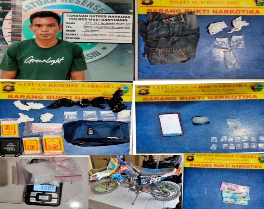 MUBA,JR.ID – Karena seringnya melakukan transaksi narkoba dirumahnya, JS (35) warga desa gajah mati kecamatan sungai keruh ini tak berkutik ketika personil Satres Narkoba Polres Muba menemukan barang bukti narkotika jenis Shabu saat melakukan pemeriksaan dirumah JS di Desa Gajah Mati Kecamatan Sungai Keruh, Senin (02/09/2024).