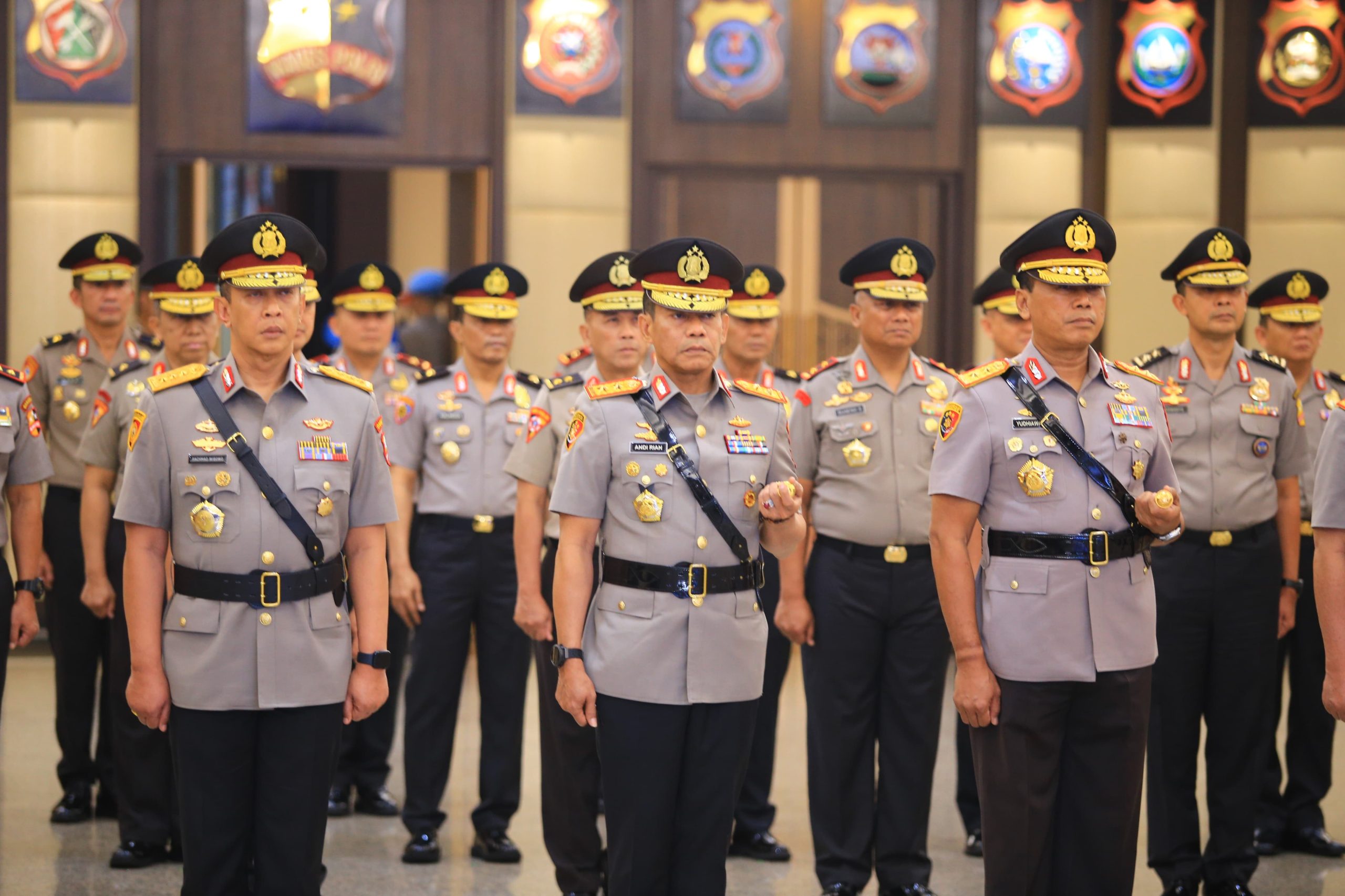 “Kapolri Jenderal Polisi Listyo Sigit Prabowo memimpin upacara pelantikan dan serah terima jabatan pejabat utama Mabes Polri Dan para Kapolda, serta upacara laporan kenaikan pangkat ke dan dalam golongan Pati Polri,” kata Kabag Penum Divisi Humas Polri Kombes Pol Erdi A Chaniago dalam keterangan tertulisnya, Sabtu (28/9/2024).