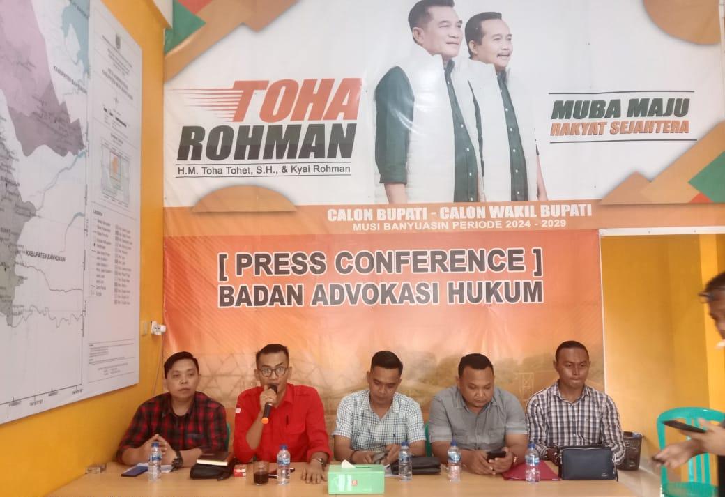 MUBA,JR.ID – Diduga Banyaknya Laporan Terkait Pelanggaran Pilkada yang dilakukan oleh Paslon Bupati 01, Badan Advokasi Hukum Toha-Rohman Gelar Conference Pers.