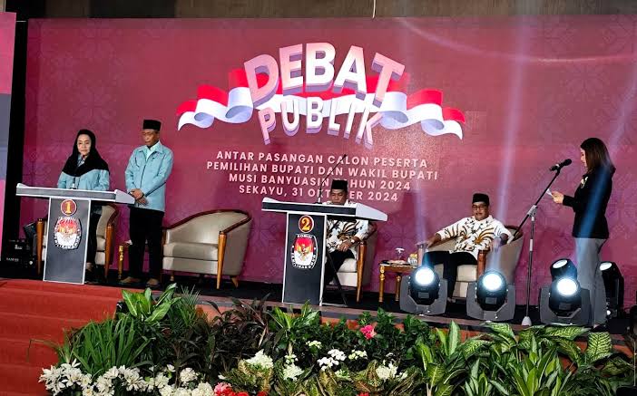 MUBA,JR.ID – Debat Perdana Kandidat Calon Bupati Dan Wakil Bupati Musi Banyuasin Pada Pilkada 2024 Berlangsung Lancar dan Aman. Debat Calon Bupati dan Wakil Bupati Muba tersebut berlangsung di Gedung Dharma Wanita Persatuan, Kamis Malam (31/10/2024).