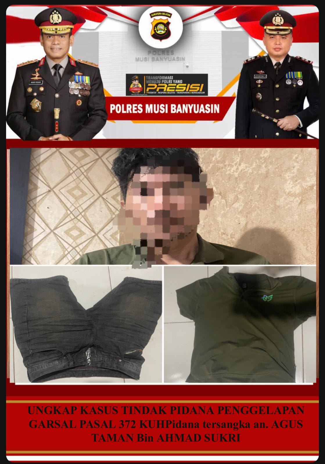 “Terhadap pelaku akan kita jerat dengan pasal 372 Kuhpidana,” tutupnya.