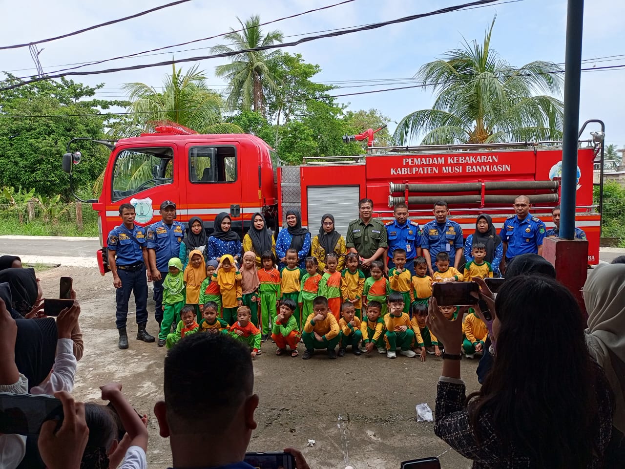 Anak – anak TK Aisyiyah Kecamatan Babat Toman tersebut terlihat tampak antusias mengikuti arahan dan materi yang diberikan Tim Damkar Musi Banyuasin.