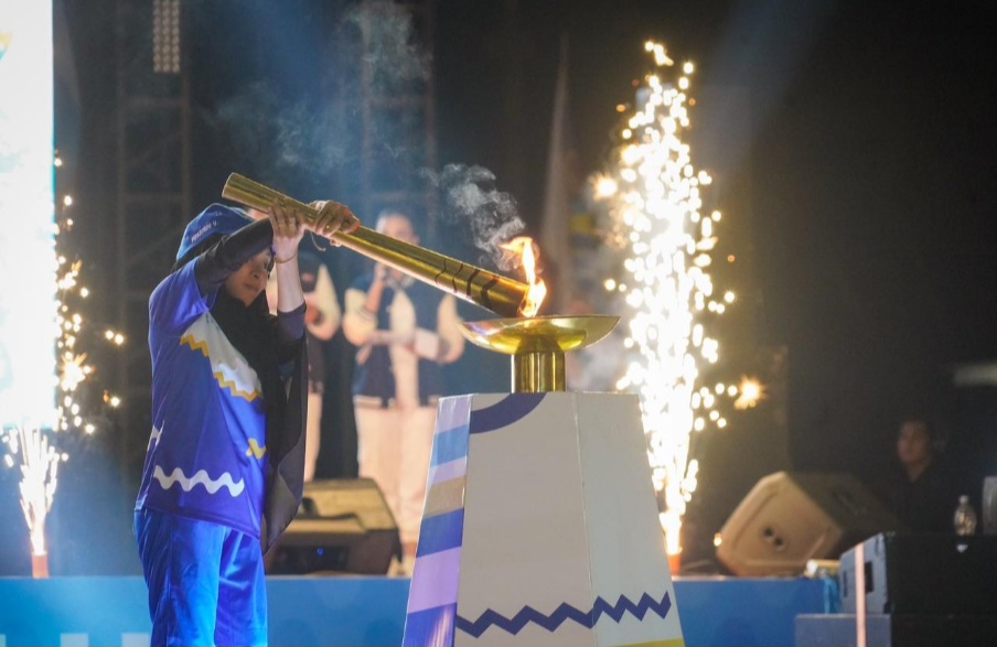 Namun, perhatian publik malam itu bukan hanya tertuju pada meriahnya defile kontingen atau sorotan lampu panggung, melainkan pada sosok muda berhijab pembawa obor — Tasya Permata Sari, atlet para bulu tangkis, Muba Sumsel yang telah sukses menembus pentas nasional.