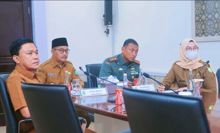 MUBA,JR.ID – Wakil Bupati Muba Kyai Abdur Rohman Husen bersama Dandim 0401 Muba Letkol Kav Fredy Christoma Pramono P., menghadiri Rapat Evaluasi Percepatan Pembangunan Kawasan Desa Koperasi Makmur Produktif (KDKMP) yang dipimpin Presiden Prabowo Subianto secara virtual, Selasa (25/11/2025) di ruang rapat Sekda Muba.