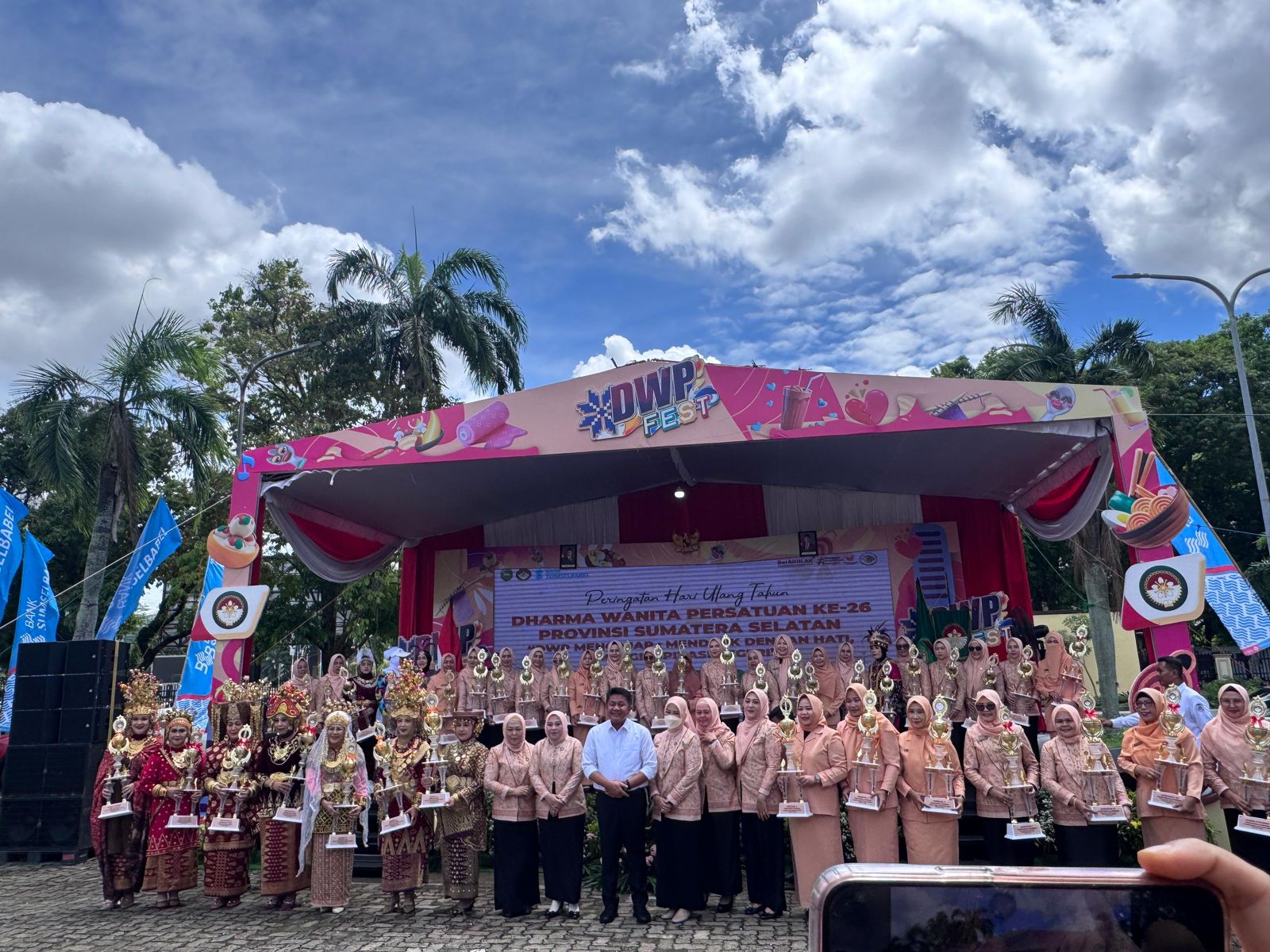 Rangkaian acara puncak diisi dengan penyerahan hadiah kepada para pemenang berbagai lomba yang telah digelar sebelumnya. Nuansa budaya kental terasa saat para Ketua DWP kabupaten/kota se-Sumatera Selatan tampil anggun mengenakan busana adat khas daerah masing-masing. Harmoni warna dan ragam busana tradisional tersebut menjadi simbol kekayaan budaya Bumi Sriwijaya yang terus dijaga dan dibanggakan.