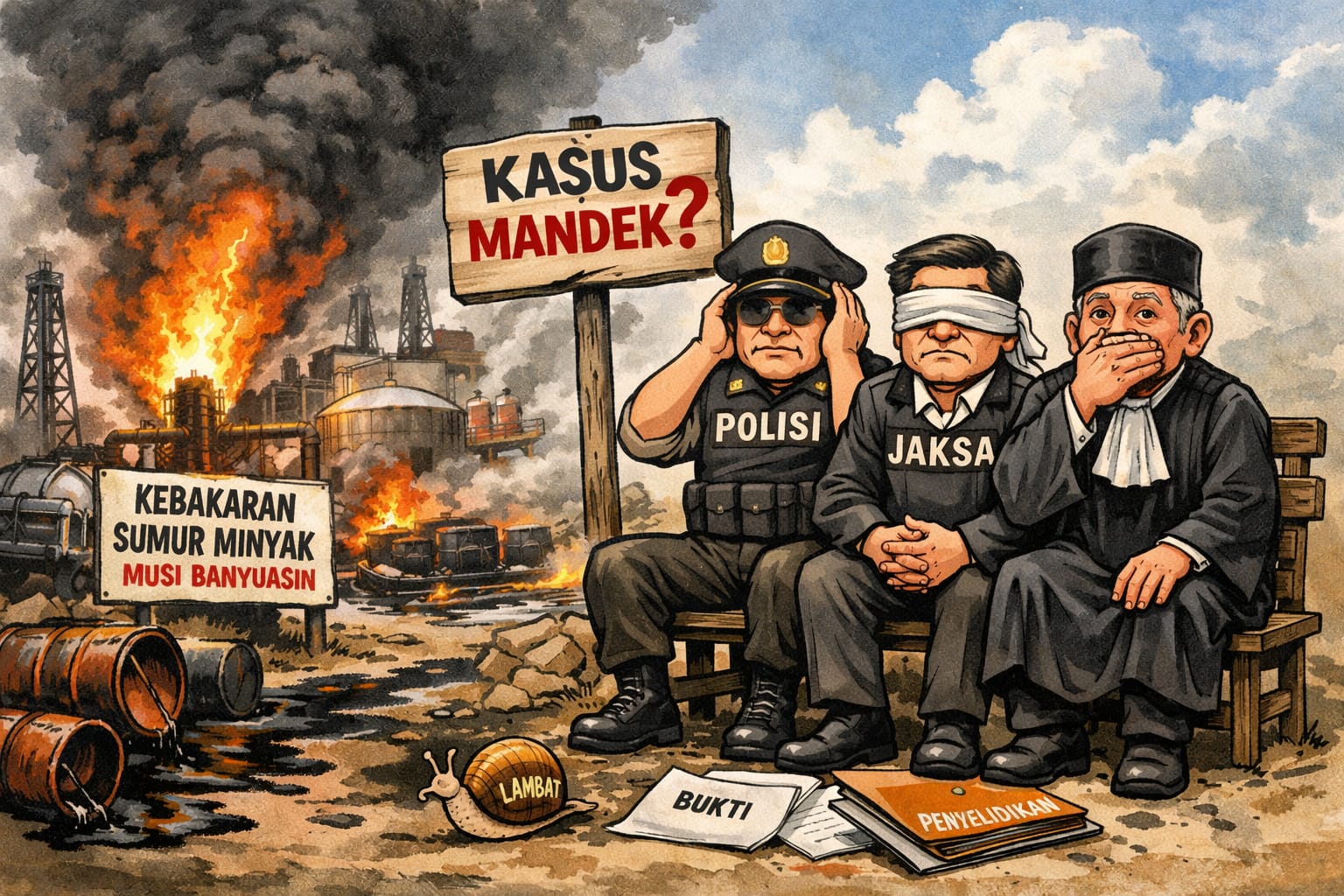 “Sejumlah kasus baru-baru ini terjadi seperti kebakaran sumur minyak dan penyulingan Ilegal di Kecamatan Keluang yang belum ada penuntasan. Kemarin penyulingan juga terbakar di Kecamatan Sanga Desa, apakah akan berakhir sama seperti kasus di Kecamatan Keluang yang mandek,” ujarnya, Jumat (27/2/2026).