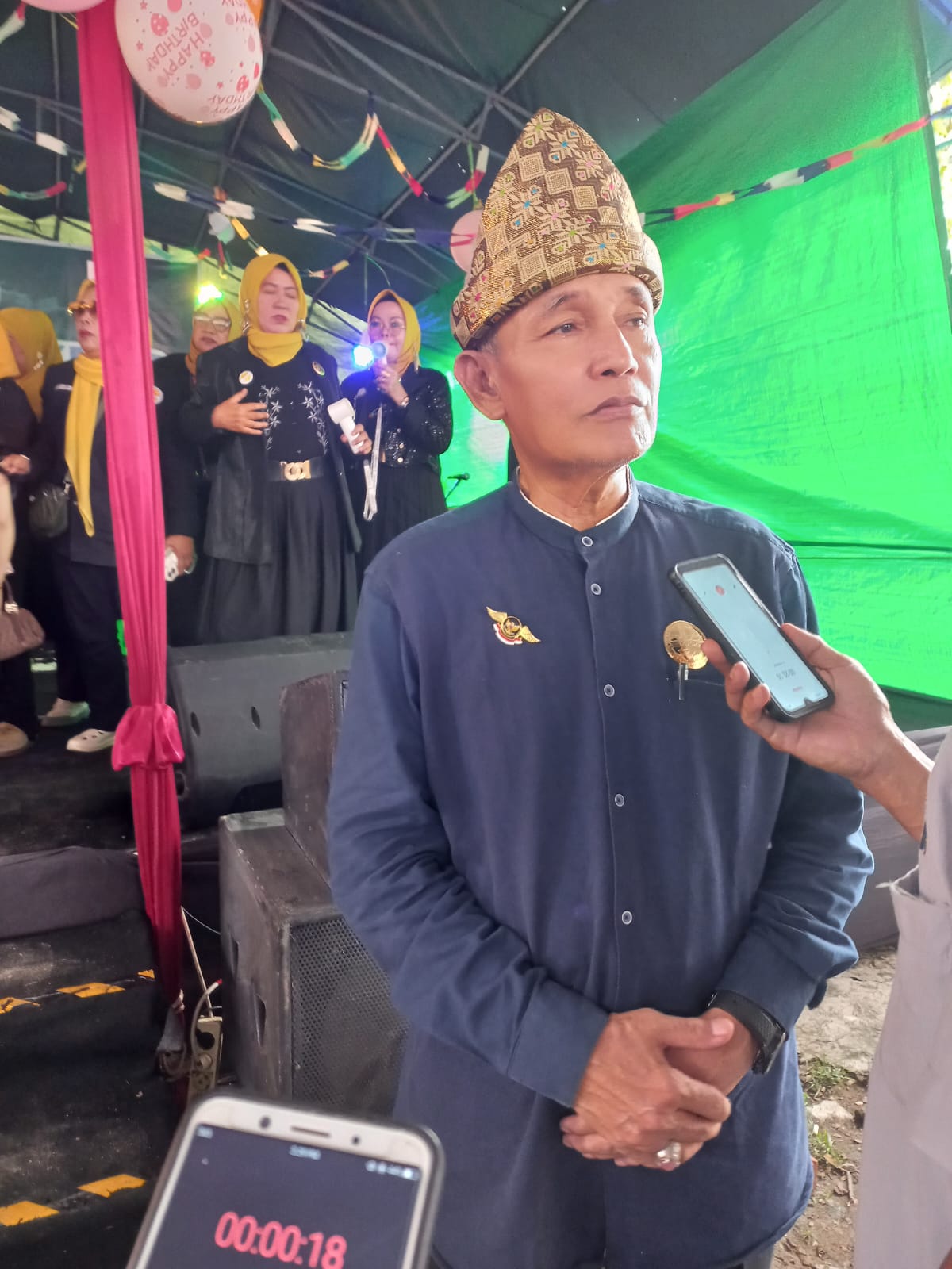 Salah satu tujuan dari Anniversary ini disamping memperingati ulang tahun KKPP sekaligus disini kita juga mengadakan lounching bintang dangdut plus itu kita merekrut di 18 kecamatan, di 18 kecamatan nanti anak-anak itu nanti di umur 17 sampai 25 tahun itu bisa mendaftar di posko kita disini dan bisa juga mendaftar dikecamatan.
