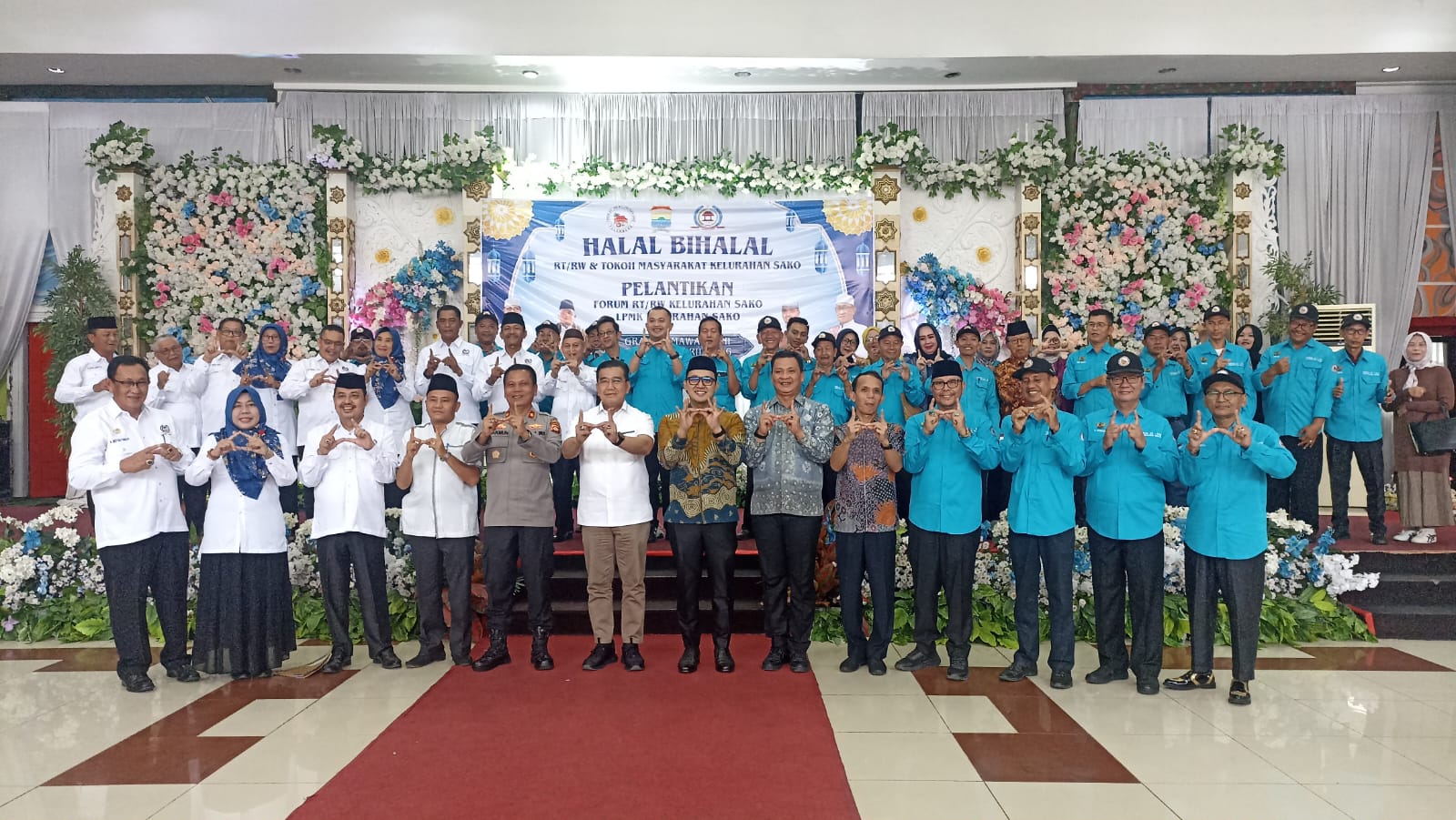 Dalam acara Halal Bihalal sekaligus pelantikan dan pengukuhan pengurus forum RT/RW serta lembaga pemberdayaan masyarakat kelurahan Sako, Camat Sako, H. Rakhman Hidayat Pane, S.STP, menyampaikan bahwa pelantikan ini mencakup pengurus Forum RT/RW dan LPMK untuk masa bakti lima tahun ke depan.
