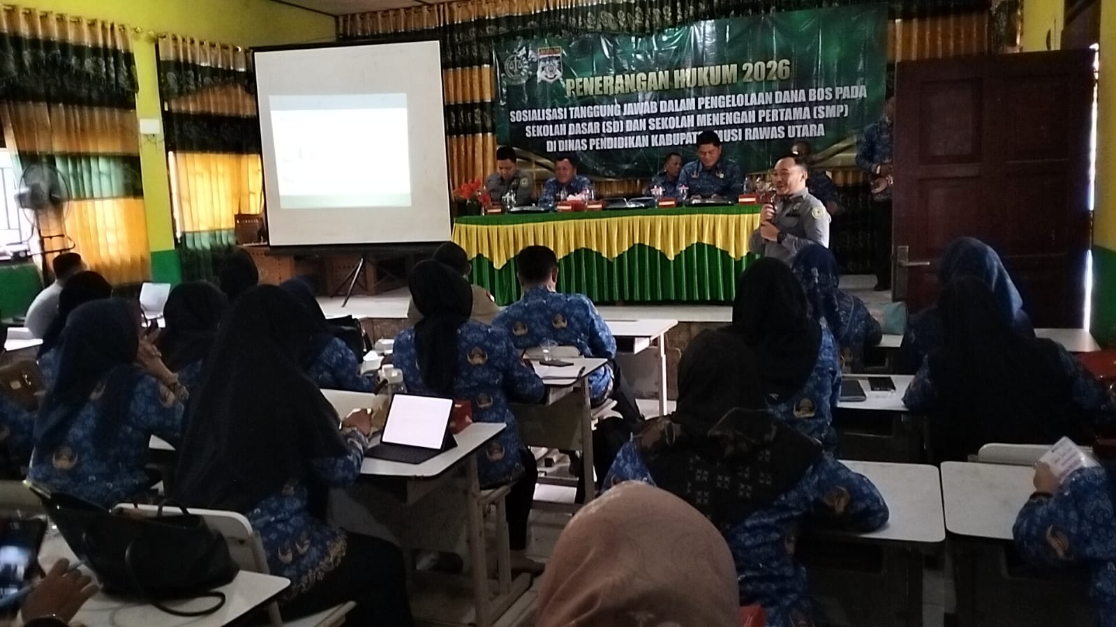 Kegiatan ini diikuti oleh kepala sekolah dan tenaga pendidik sebagai upaya memberikan pemahaman komprehensif terkait tata kelola Dana BOS yang akuntabel dan bebas dari pelanggaran hukum.
